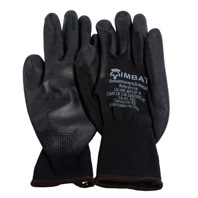 Luvas de segurança contra agentes mecânicos confeccionada em malha de poliéster e Nylon, com banho de poliuretano (PU) antiderrapante na palma e nos dedos, punho elástico, nos tamanhos M, G e EG. Ideal para trabalhos de manutenção, transporte e montagem de pequenas peças.